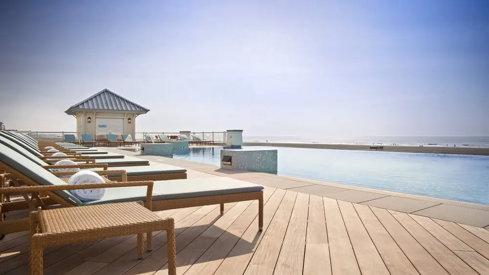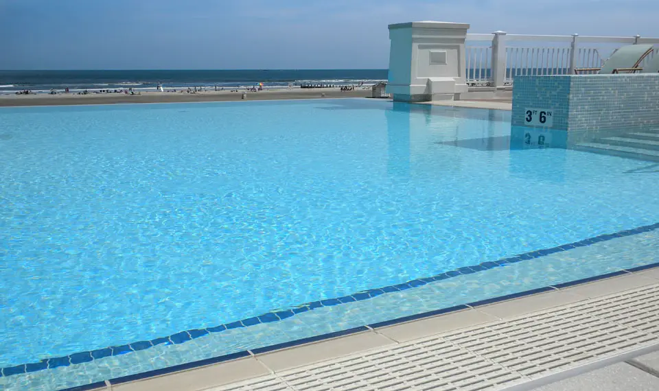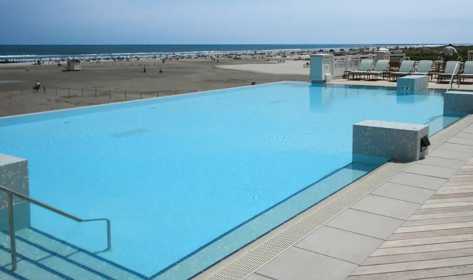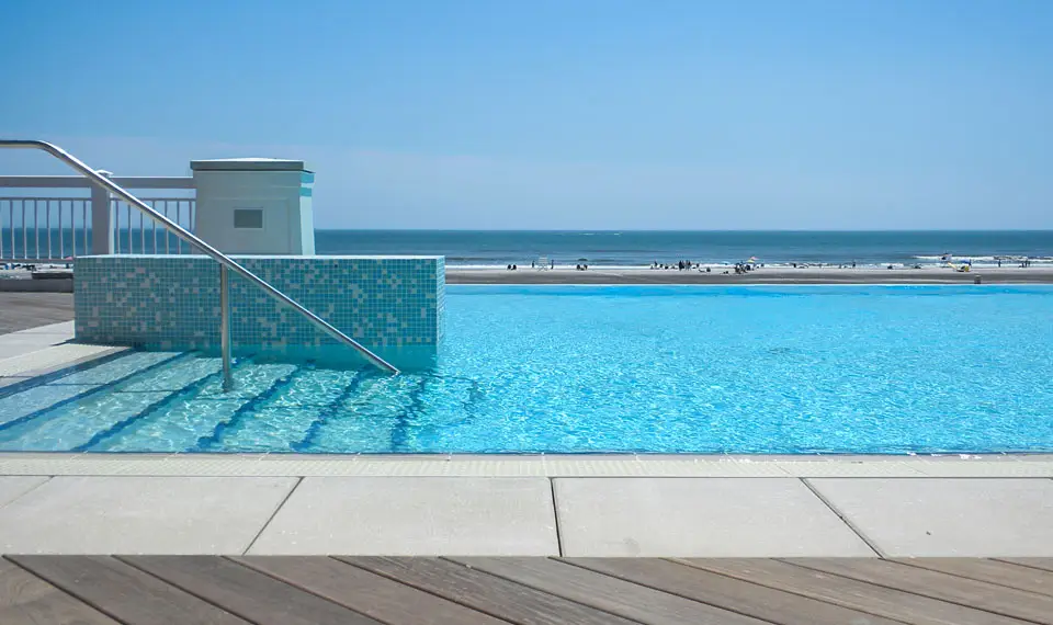 The Grand at Diamond Beach in Wildwood, New Jersey redefined luxury coastal living in 2009 with a stunning infinity edge leisure pool that captures the essence of beachfront sophistication. Designed by Wallover Architects and constructed using Myrtha Pools® technology, this elevated amenity creates the illusion of water flowing seamlessly into the horizon—delivering the visual drama and resort-style experience that distinguishes premier oceanfront properties.