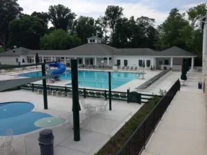 The Elkridge Club in Baltimore, Maryland enhanced its member amenities with a refined aquatic complex that balances adult fitness with family-friendly recreation. Completed in 2013 in partnership with Integrated Aquatics Engineering Inc., this facility features a 3,438 square foot lap pool designed for serious swimmers and aquatic fitness classes, complemented by a 715 square foot splash pad that provides a safe, engaging water play area for the club’s youngest members.